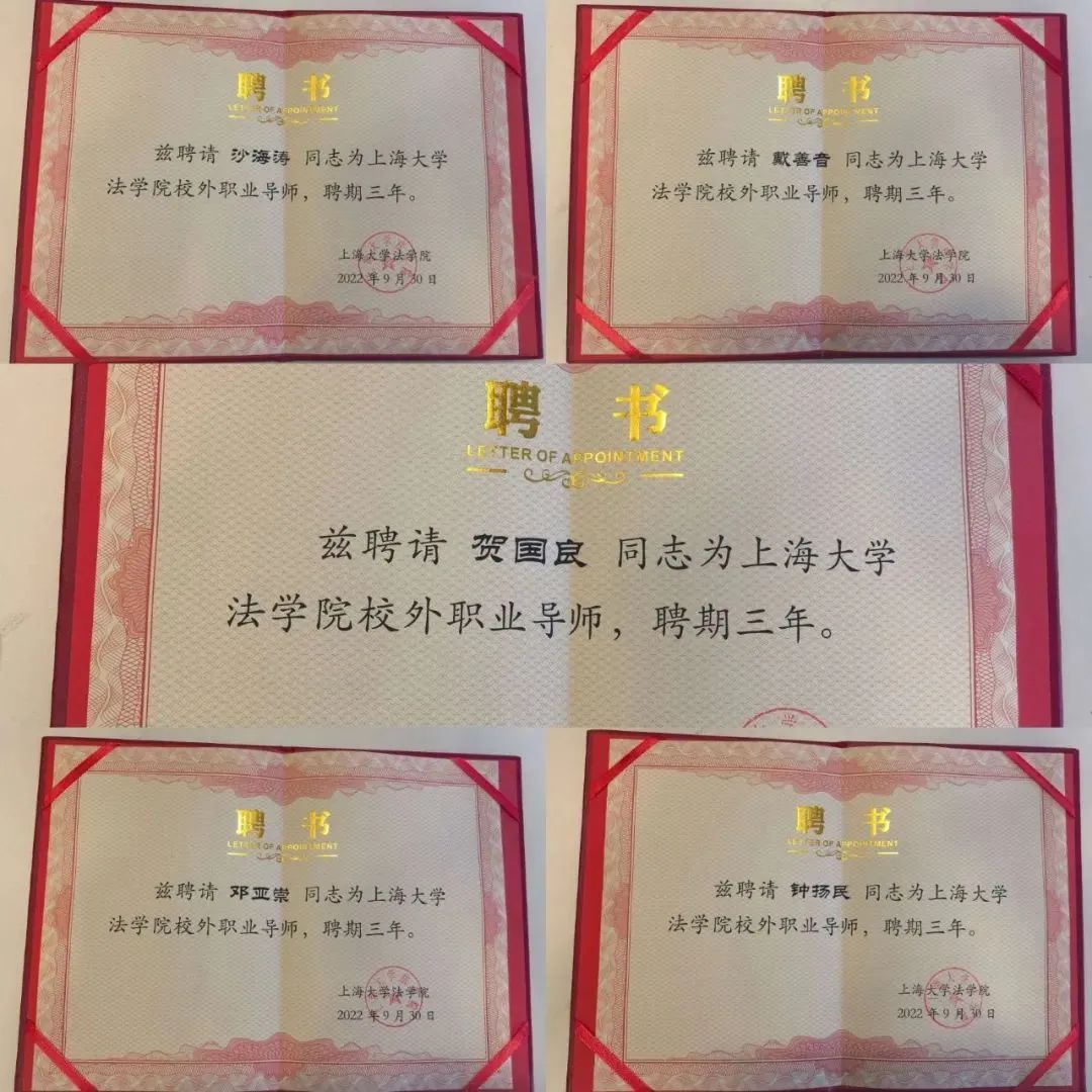 于伟副书记、副院长宣读《英国威廉希尔公司官网关于聘任贺国良等5位校外职业导师的决定》,聘任贺国良、 沙海涛、邓亚崇、戴善音、钟扬民担任英国威廉希尔公司官网校外职业导师,聘期三年,承担指导学生的法务实践、创新创业和就业能力提升等工作。